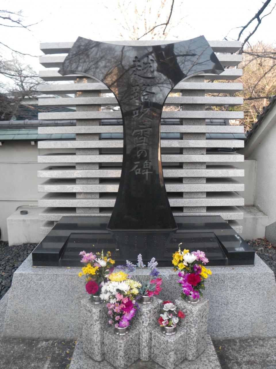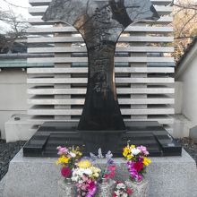麻布山善福寺の墓所入口あたりに、1980年に56歳の若さで亡くなった越路吹雪の碑がありました。代表曲の「愛の賛歌」が刻まれています。お墓のようにも見える碑ですが、実際のお墓は川崎市にあるそうで・・・。どうしてこの場に碑があるのか謎です。