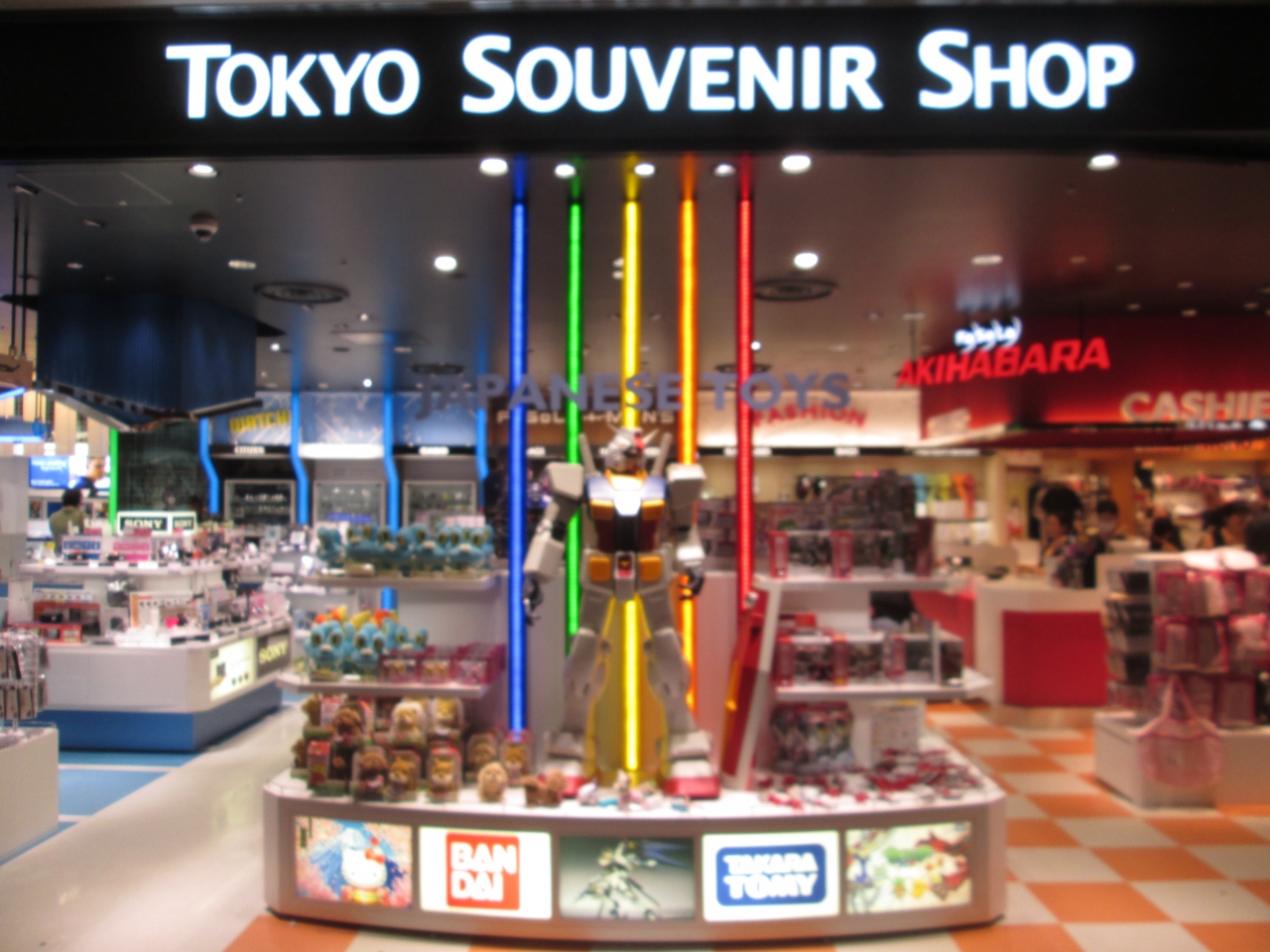 国際線ターミナルの拡張にともないショッピング関係も充実しました。海外に出発する際のお土産だけでなく、外国人用のお土産も数多く販売しています。ファソラ免税店にはガンダムの大きいプラモデルが置いてありました。