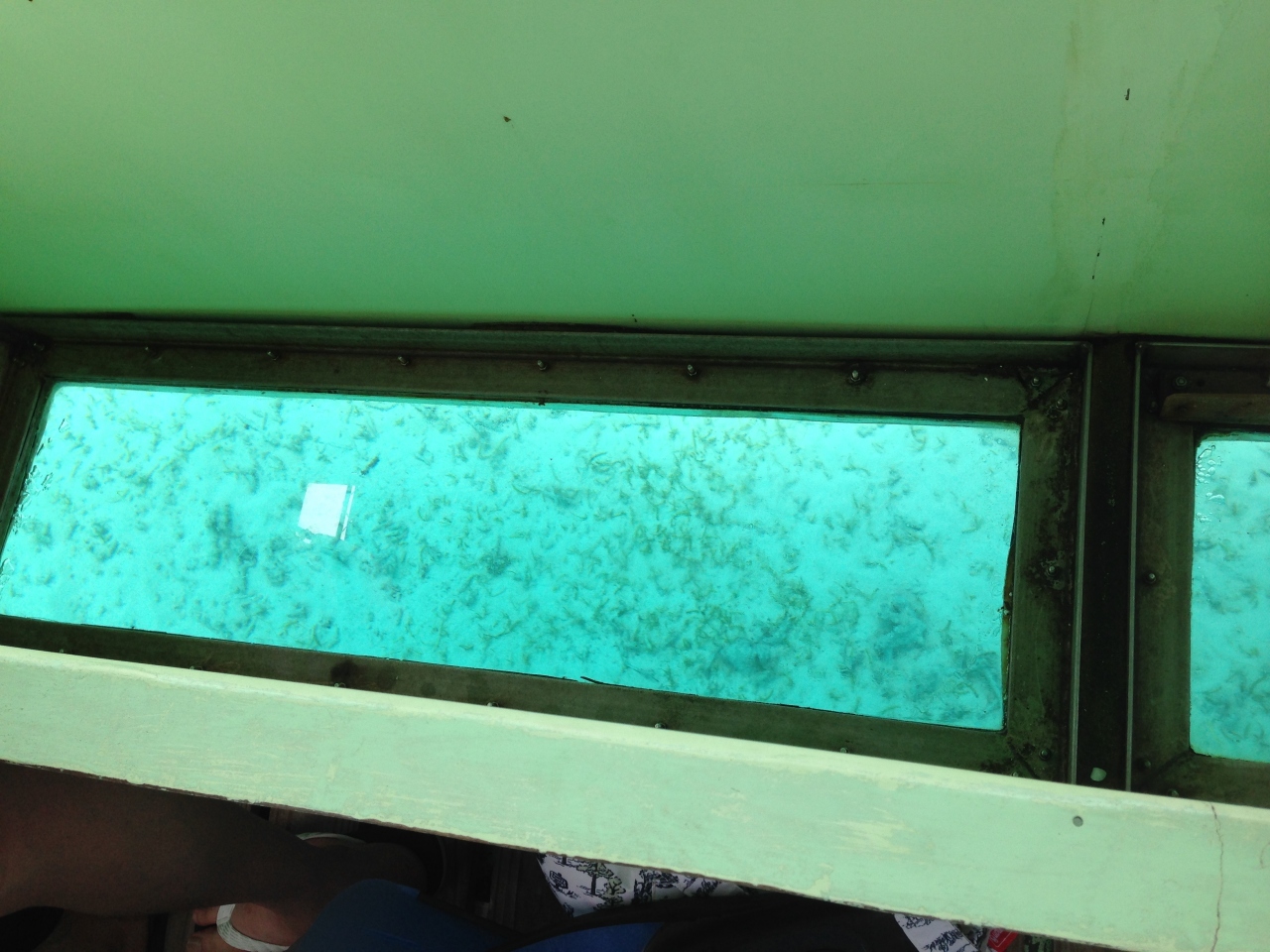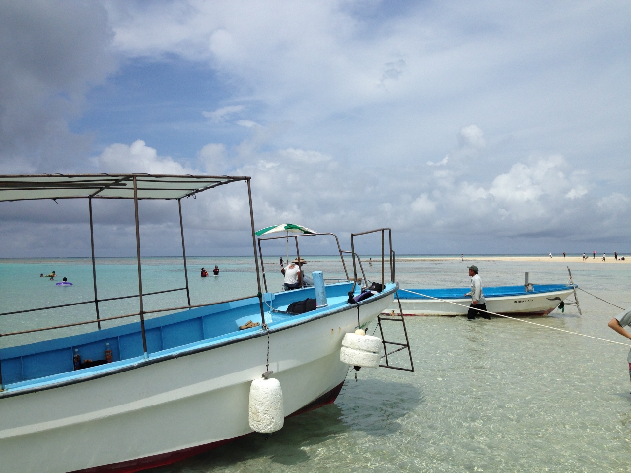 大金久海岸から、沖合に干潮時にだけ出現する、百合ヶ浜というビーチにグラスボートで渡りました。舟の足元がガラス張りになっているので、海の底や魚を見ることができます。また、海の透明度が高く、風を感じながらのクルージングは、とても最高です。百合ヶ浜は、歩いて渡れますが、シュノーケリングも浅いエリアでできるので、お子様にも楽しめそうでした。