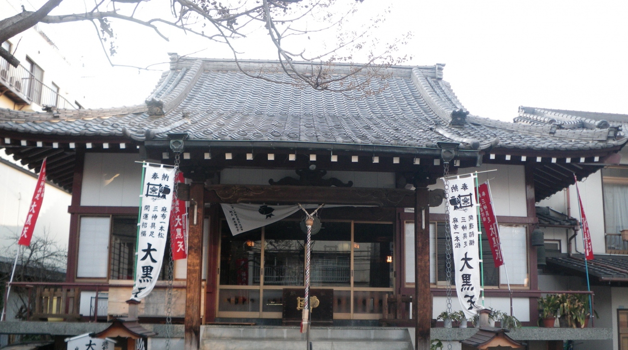 麻布十番の大黒坂中腹にあるお寺。慶長2年(1597)創建の歴史あるお寺です。港区七福神のひとつ大黒様がまつられています。港七福神めぐりの専用色紙があるので、七福神めぐりをしながらご朱印を集めるのも楽しそうです。