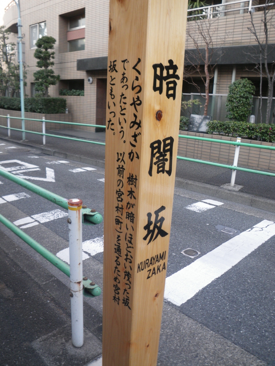 麻布十番散策で通りました。坂はかなりの急勾配で、昔は鬱蒼と木が生い茂り、狭い坂に覆いかぶさって昼間でも暗かったため、くらがり坂とも呼ばれていたそう。暗く陰気な雰囲気から妖怪や幽霊が出没するという伝説もあるそう。現在は木もなくなり明るくなっています。