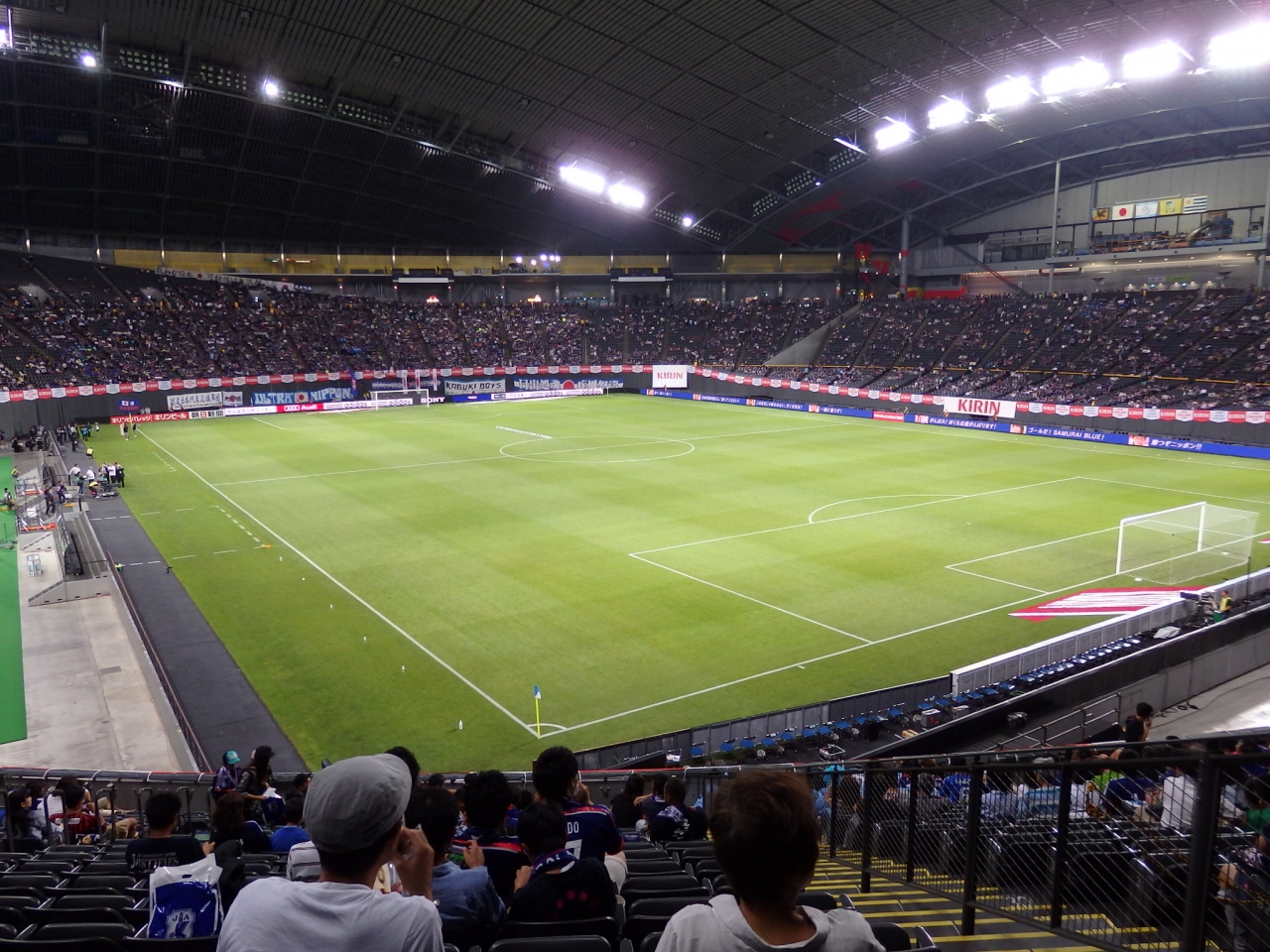 造りはもともと野球仕様なのでピッチまで遠く客席はかなり高いです。