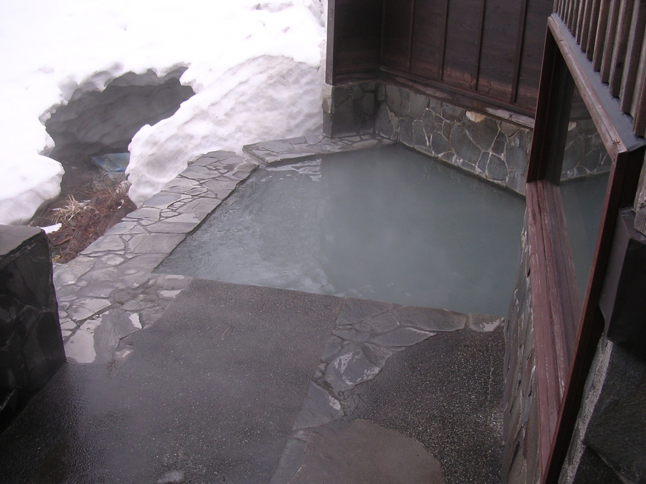 宿の周りは雪がいっぱいで、宿泊当日の朝も