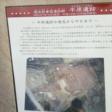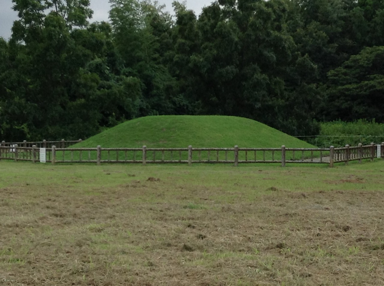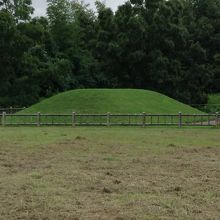 芝生の広場に王墓が復元され、出土品を記した陶器製解説の壁があります。