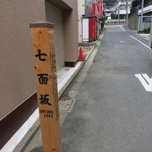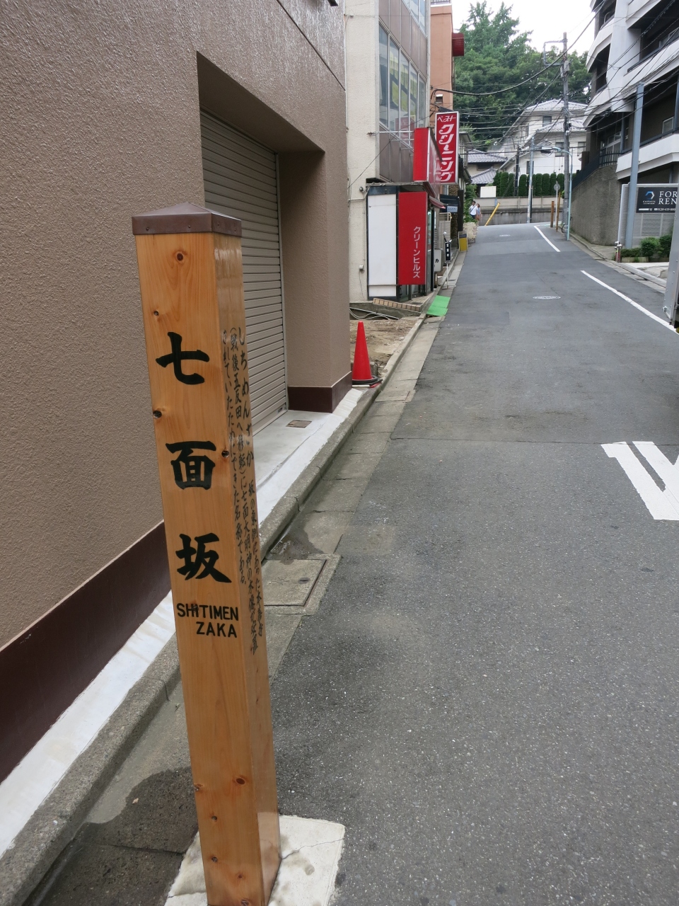 麻布十番 2丁目にある、大国坂下につながる50mもない短い坂です。この付近にあった本善寺に安置されていた七面大明神がこの坂の名前の由来になっているそうです。麻布十番商店街から一本松への抜け道となっています。