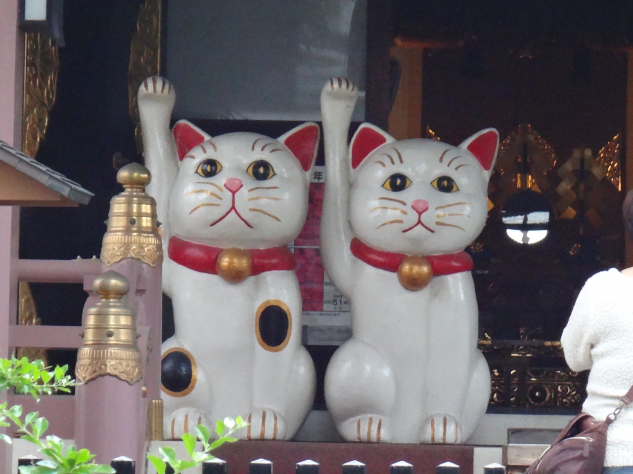 浅草時にお参りに行った後、ガイドブックで見た大きな招き猫が気になり歩いて行ってみました ゆっくり歩いて15分ぐらいで着きます 大きな招き猫を見てお参りをしてきました 縁結びに参拝する女性が圧倒的に多い神社でした 境内に枯草が多いのが気になりました