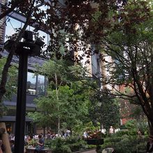 三菱一号館美術館の裏手側にある緑のある憩いのスペース「一号館広場」に隣接した丸の内パークビルディングの低層階にあたるこのショッピングスペースです。