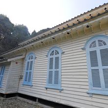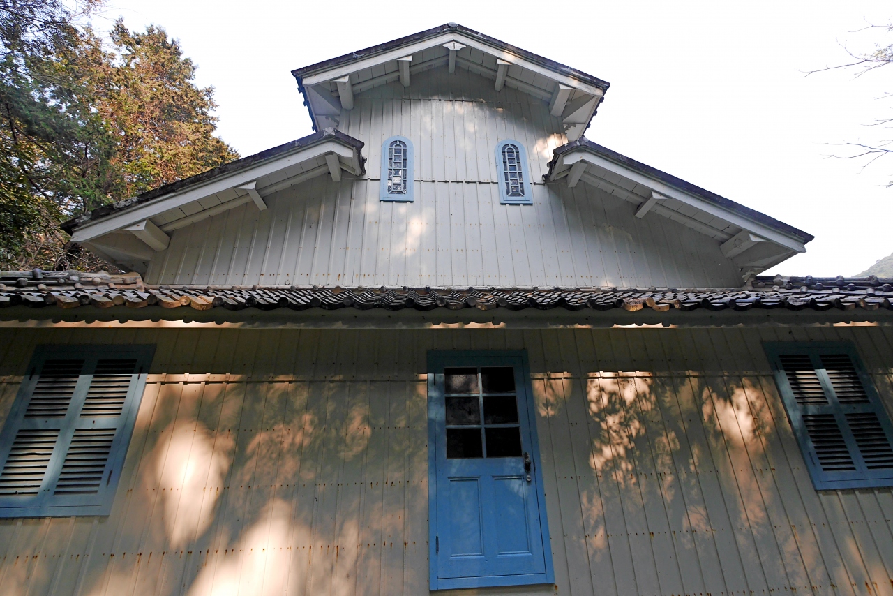 さすが鉄川与助氏の作品.木造で青と白で,とても優美な教会,なかのリブ・ヴォールト(こうもり屋根)構造も素晴らしい.少ない信徒で守っている1918年建設の木造教会.それだけでも畏敬の念がわく.本当にここまで来てよかった!福江島の水ノ浦教会に通じるものがあるが,こちらのほうが20年以上古い.