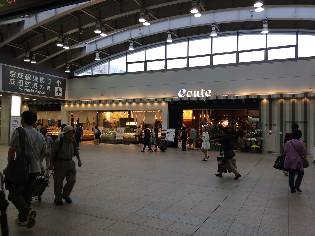 日暮里駅の北改札前にあるエキュート。品川などに比べると小規模です。