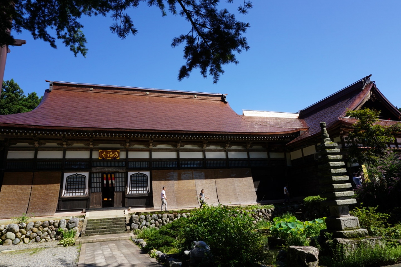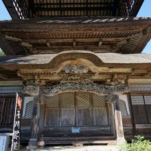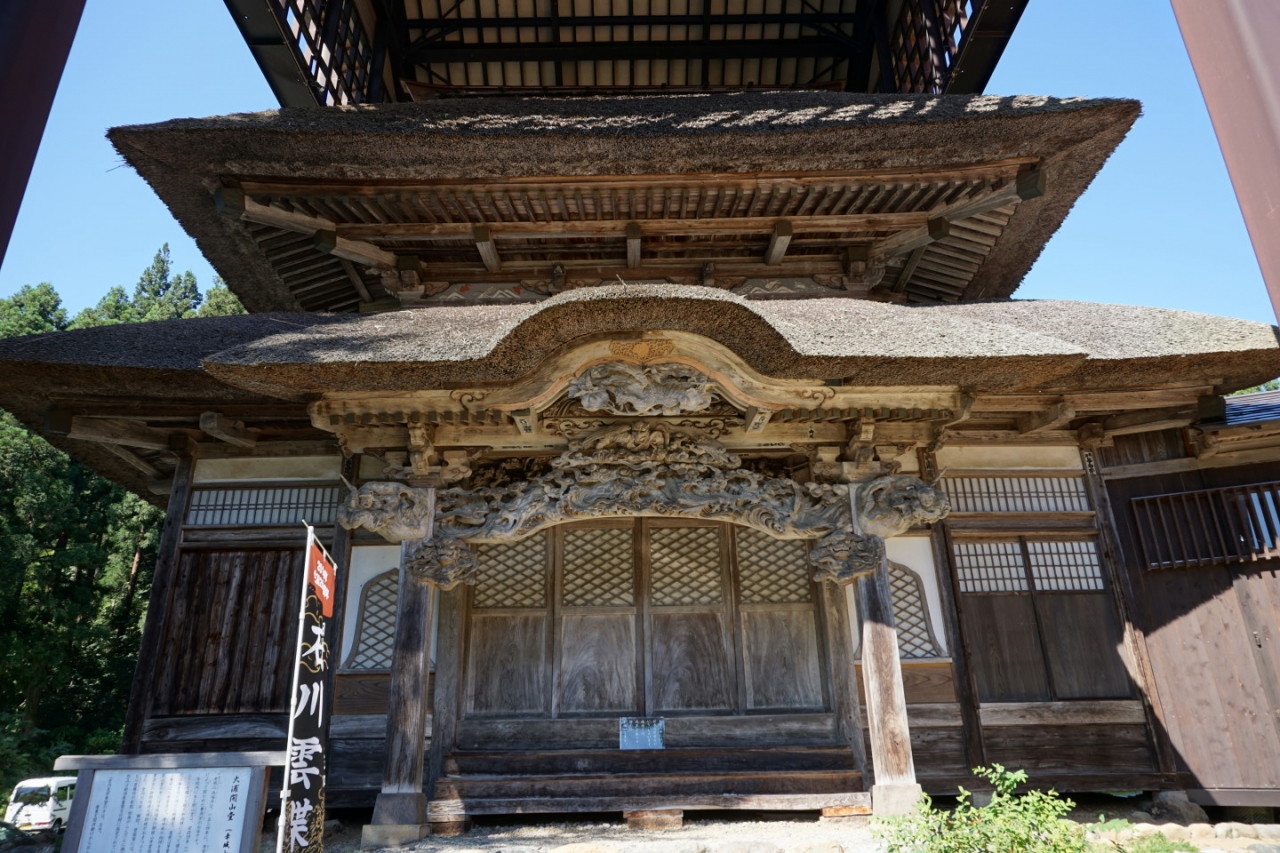 開山堂は建立されて160年ほどしか経っていませんが、雪国のせいでしょうか外観は痛みが目立ちます。現在は積雪から開山堂を護るために鉄骨で覆われています。