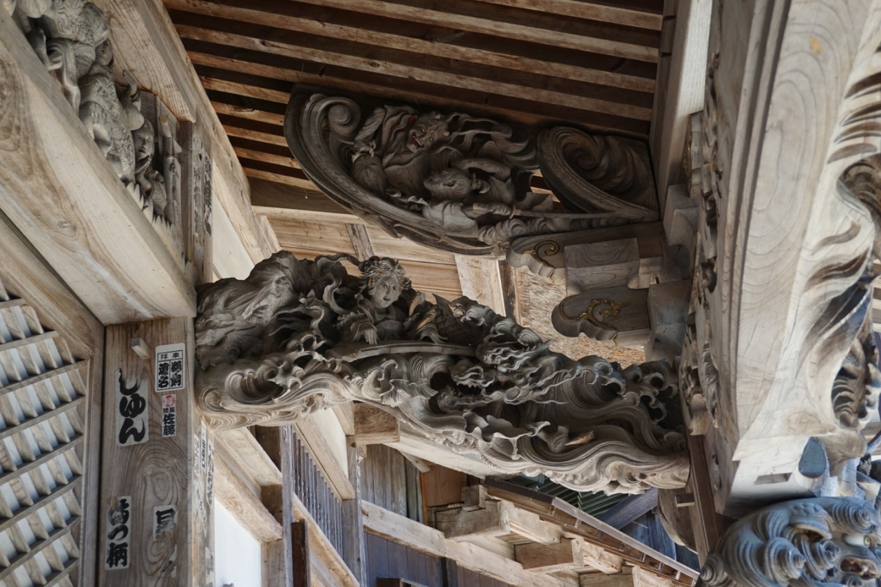 堂内には迫力ある雲蝶の彫刻で埋め尽くされています。