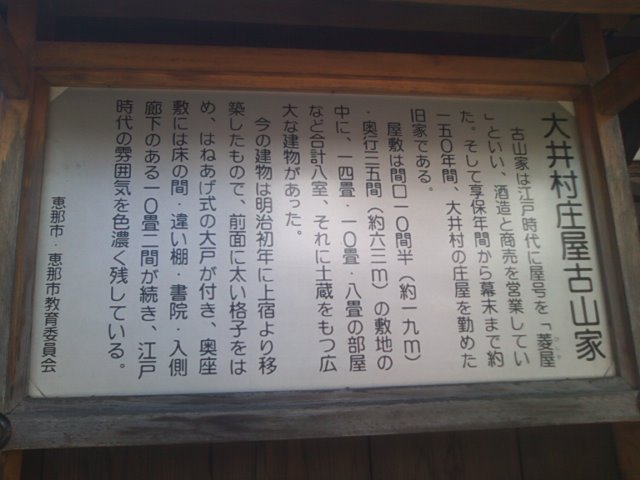 中山道の宿場町の一つ、大井宿は現在の恵那市の中心街付近にあって、アクセスも便利なので気軽に宿場町探訪を楽しめるエリアです。本陣跡に関しては、門構えが残されているだけで後は火災で焼失してしまったようですが、安土桃山様式も見られる立派な装飾も残されていました。また、門の傍にある松の木は樹齢300年を誇っていてとても見応えがありました。