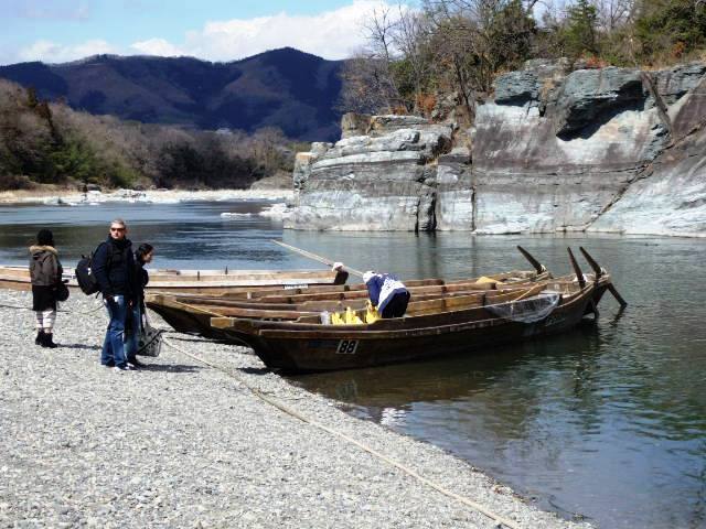 長瀞渓谷ライン下りは荒川中流にある長瀞渓谷の巨岩のある淵瀬、高さ数十メートルの秩父赤壁といわれる岩壁、岩畳などを見ながら船下りする観光で船頭のガイドで春は芝桜、夏は涼風、秋は紅葉の渓谷美、冬は名物「こたつ舟」が楽しめる。長瀞渓谷(ながとろけいこく)は美しいところだ。