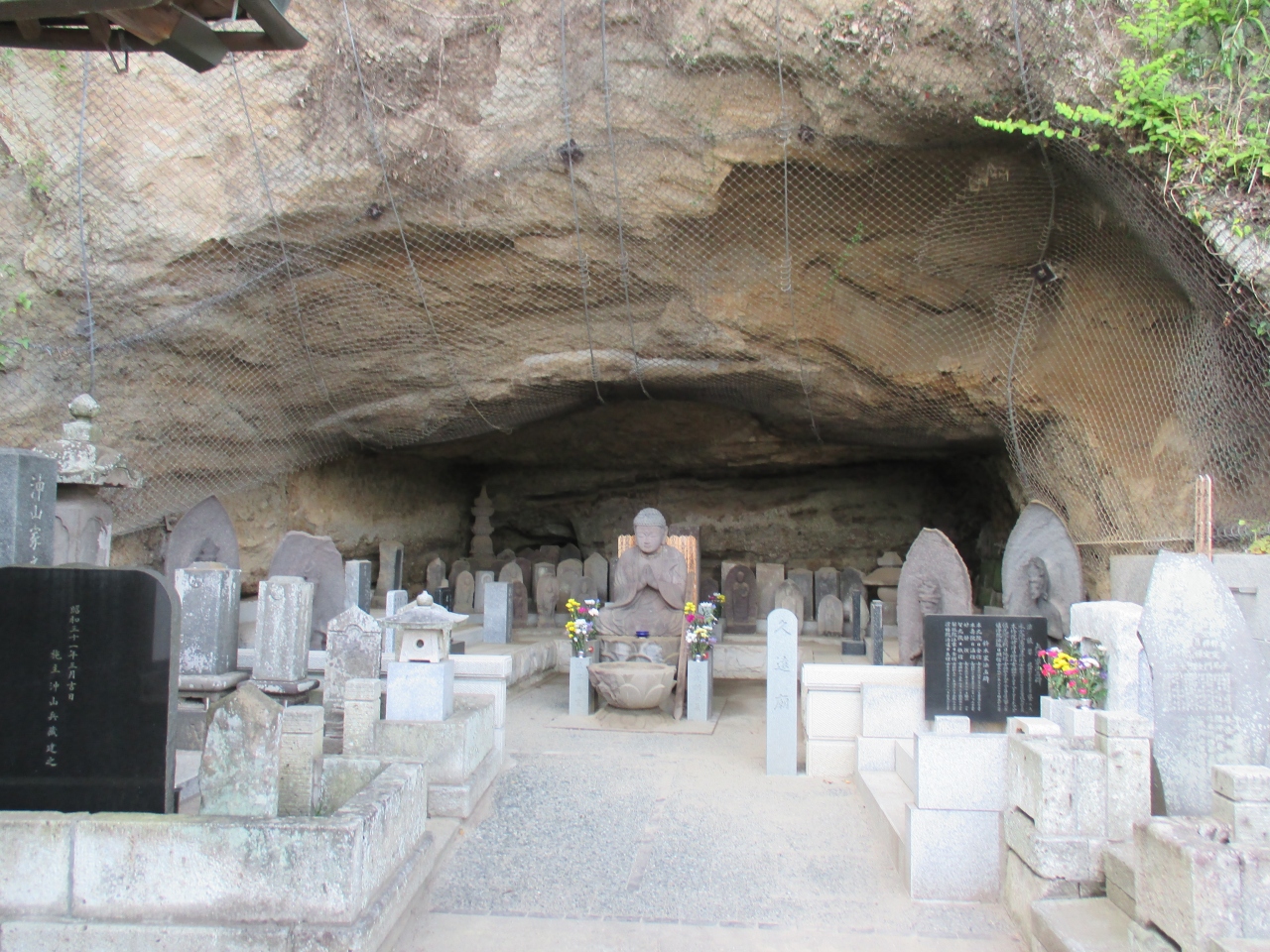 歴史的遺跡というより、現役のお寺としての活動も盛んにされています。家庭児童相談室やグリーフケアなどの現代的問題にも取り組んでおられます。裏の墓地には観音堂があり、その隣にはやぐら様の横穴もあります。古い墓碑と現代のお墓が入り組んで建っており、このお寺の立ち位置を象徴するようです。日曜日に訪れたのですが、観光客はゼロ、法事に来られた喪服姿のご家族がいらっしゃいました。