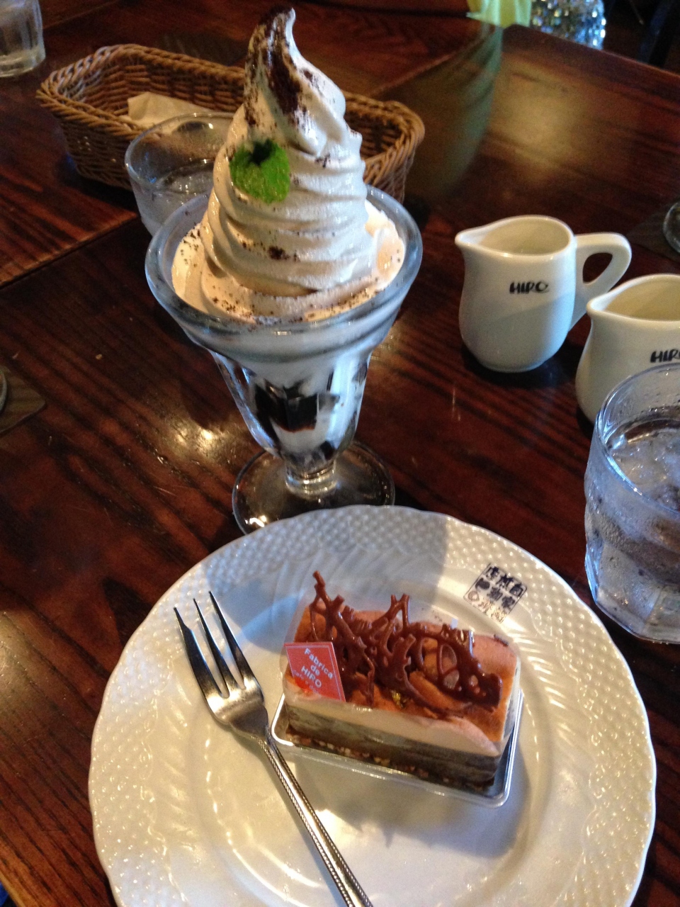季節限定のケーキでほうじ茶のケーキにしました。一口食べるとほのかに漂うほうじ茶の味。とても美味しかったです!友人のカプリと言うレモンのケーキも美味しかった!パフェもコーヒーゼリーが入った物で、コーヒー味のソフトクリームが美味しそうでした。コーヒーはいつもポットで頼みますが、2杯以上はあると思います。デカフェを頼んだらデカフェとは思えないお味で楽しめました。