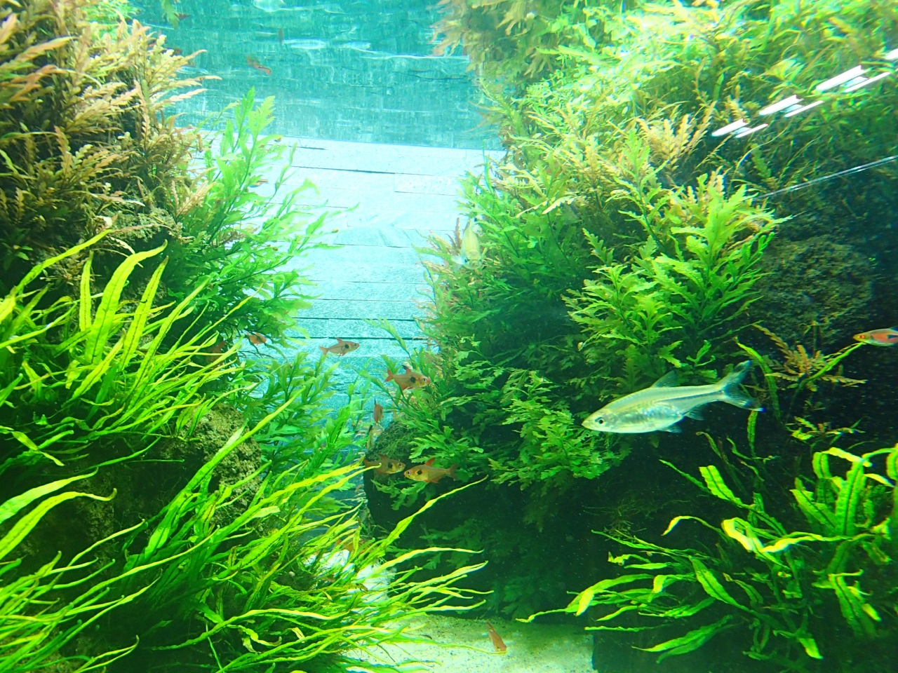 その最上階の最初の展示コーナーが「天野尚氏が手掛けた水槽/ネイチャーアクアリウム」で、NHK「美の壺」という番組でも紹介されたました。