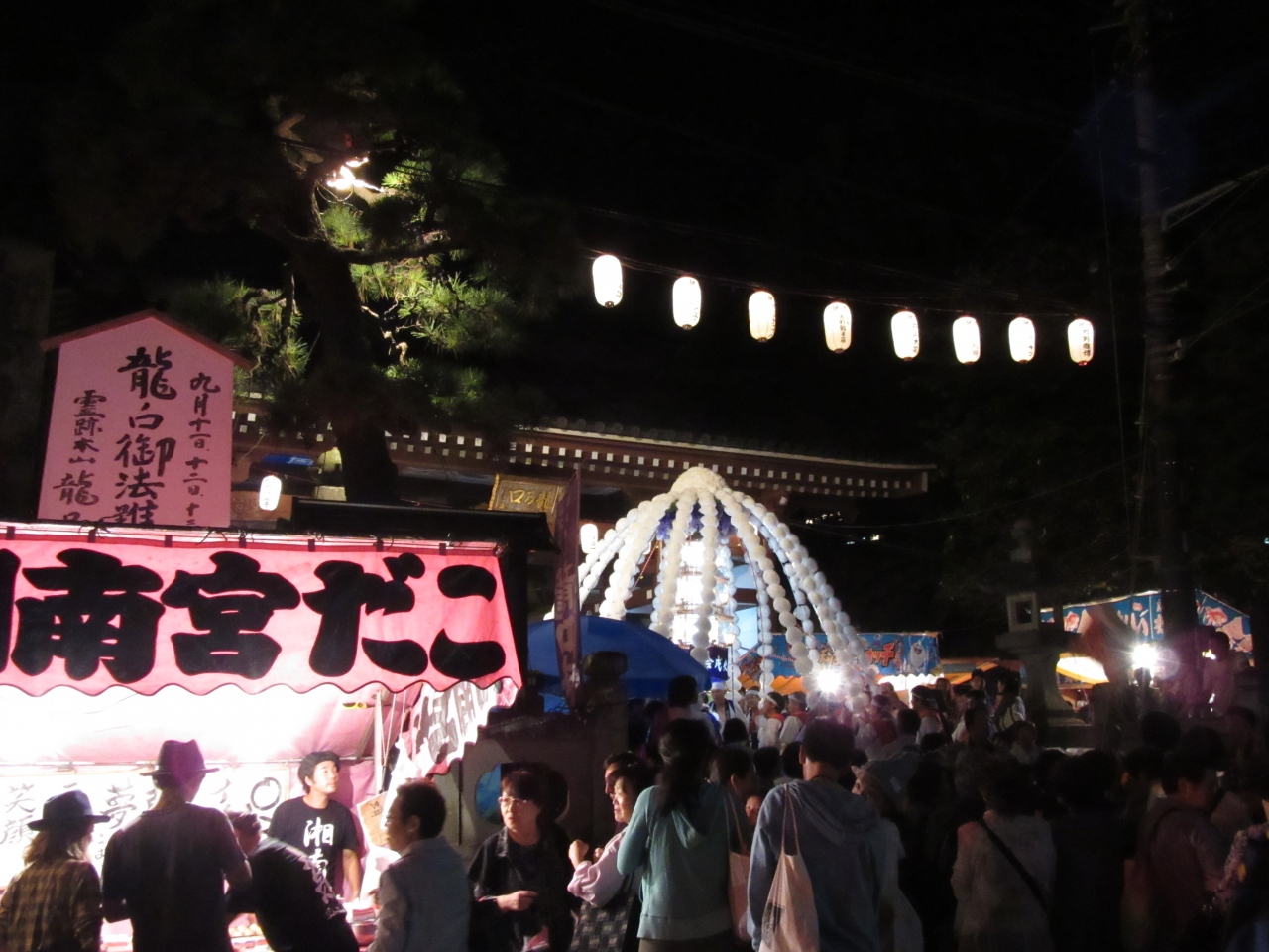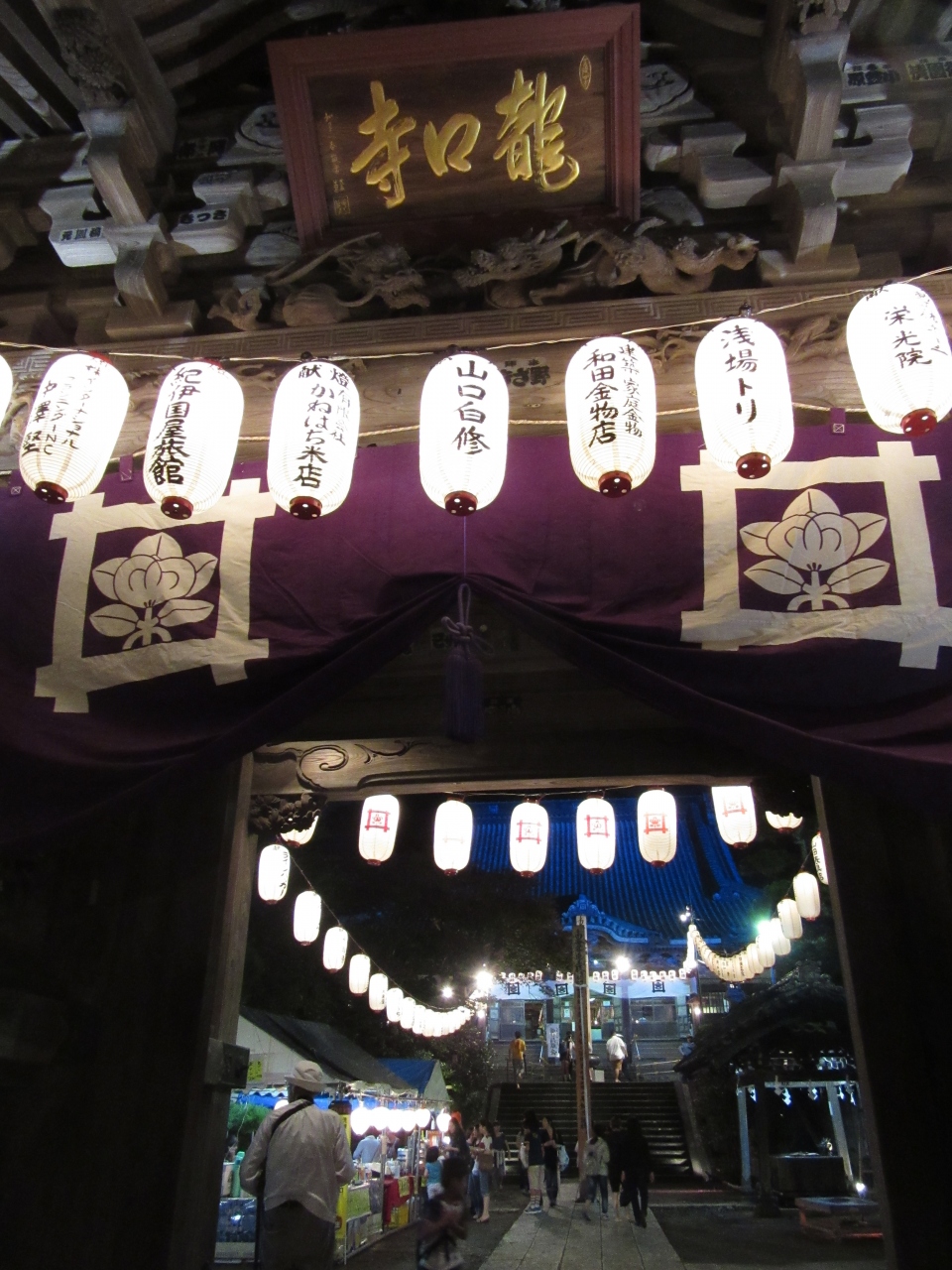 11日、雨が気になるところ傘なし(降らなかった)で、19時から万灯練り供養が行われました。境内参道、山門に至る歩道には多くの屋台が並びました。地元の子供たちがはしゃぐ姿は今も昔も変わりません。