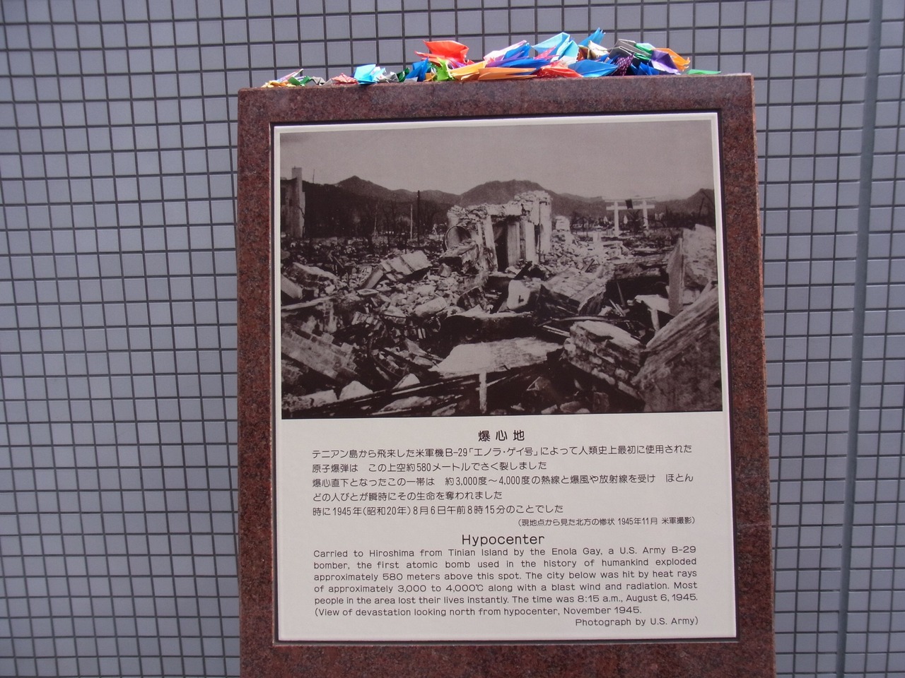 あの忌々しい原爆げ投下された爆心地。現在は病院だ建ち、目印となる石碑のみがあります。