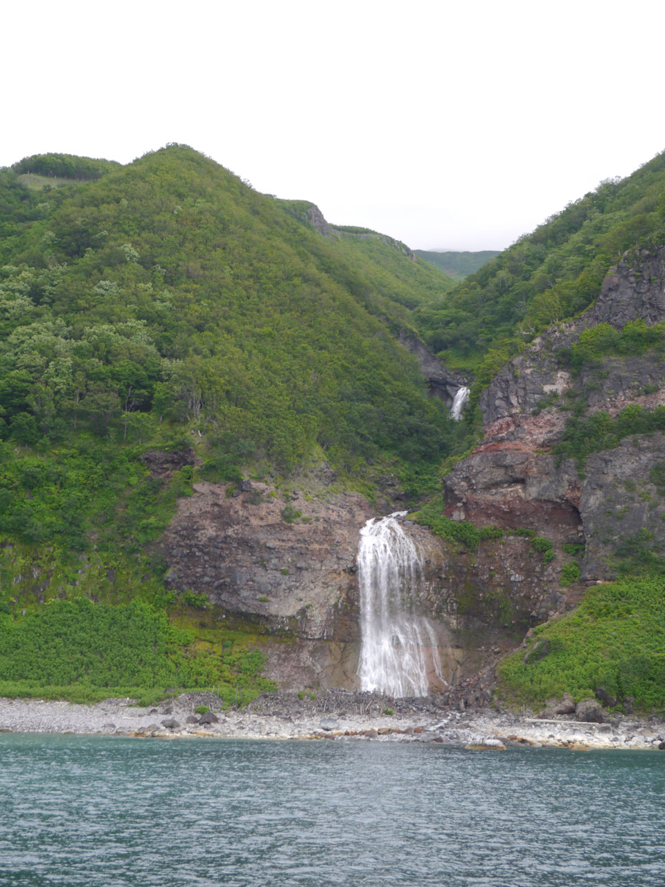 知床遊覧船で海からのカムイワッカの滝を観ました。