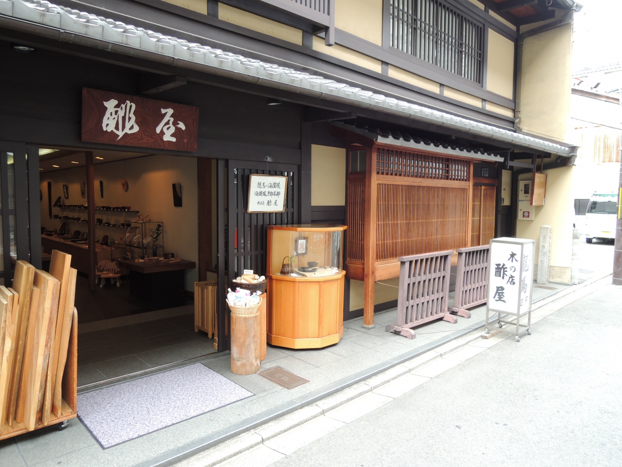 河原町三条近くにある龍馬ファンの方々が訪れる酢屋は、坂本龍馬が近江屋で遭難する直前まで身を寄せ、海援隊京都本部が置かれていた場所と言われています。 入り口に「坂本龍馬寓居の跡」の石碑が立っています。現在、1階は木製の小物類などを販売するお店となっていて、2階が、龍馬関連の展示ギャラリーとなっています。(拝観は500円)