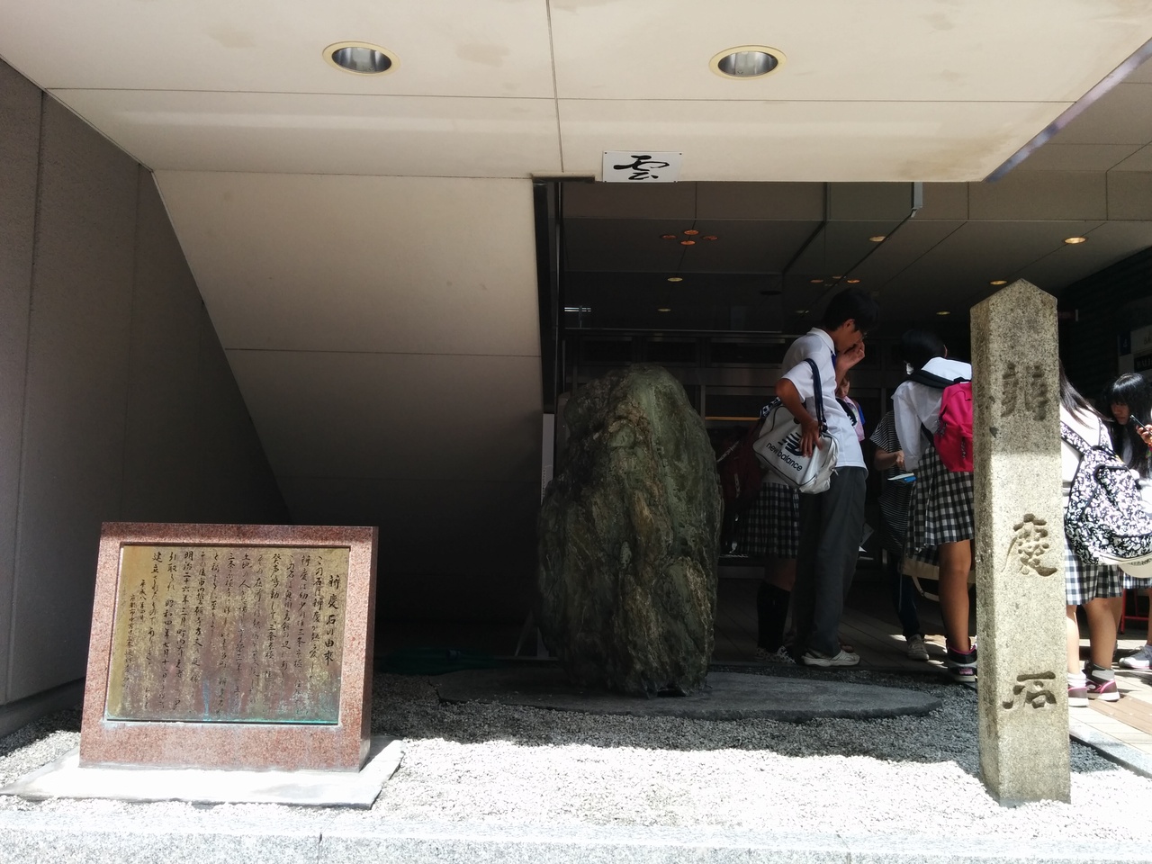 『弁慶石』を訪れた当日、修学旅行中の高校生も『弁慶石』を訪れ、大きな『弁慶石』をなでていました。