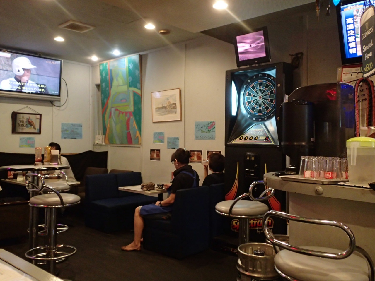昭和50年代競馬ゲームのほか、実は「平成っぽさも出してます」な、ダーツマシンも置いてある。