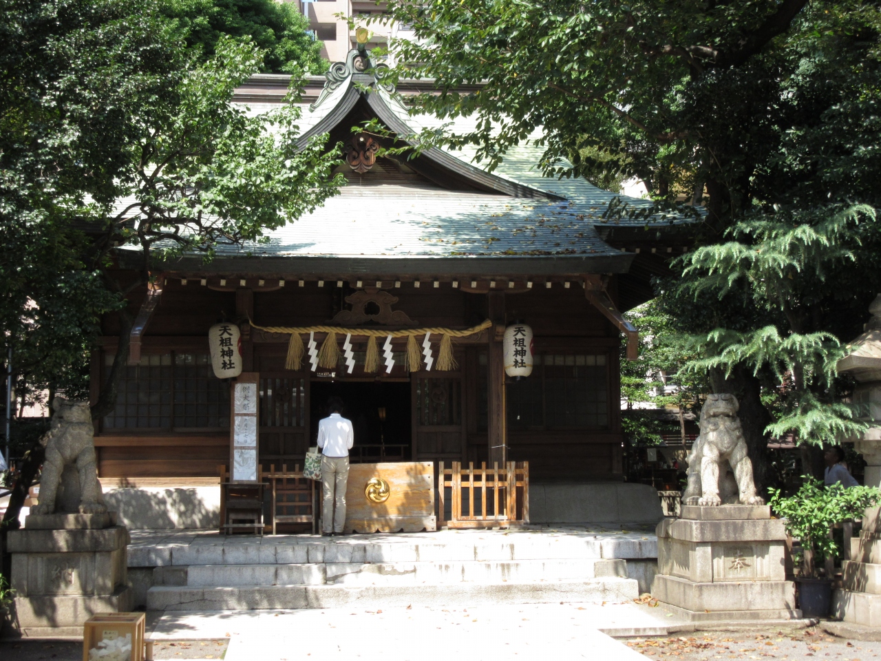 ここ、鎌倉時代末創建のご当地(旧巣鴨村)総鎮守「大塚天祖神社」。境内横には一対の大きな老木のイチョウ、これが夫婦公孫樹(めおといっちょう)、有名です。縁結びにいいらしいと・・。「さざれ石」や子育狛犬も知られています。拝殿両脇には境内社が鎮座、参拝甲斐があります。祭礼は9月17日、江戸っ子が神輿練る・盛大です。