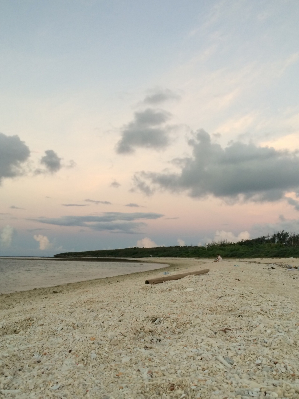 白い砂浜に腰を降ろしてただ朝日を待ちます。ヤドカリもたくさんいます。