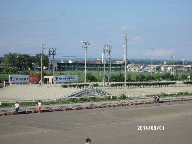 「銀の匙」を愛読していた息子がぜひ行きたいというので、今回初めてやって来た。自分も重いそりを引く競馬が実際はどういうものか少し興味があったので楽しみにして来た。たまたま開催日ということで観光客より地元の愛好家の方が多く圧倒されたが、その人たちの1レースごとの行動も興味深いものであった。実際のレースは思いのほか遅く途中駆け引きなのか休憩なのか止まることが多く、どの馬が最後抜け出して1位になるか最後の最後まで分からず、そういう意味で不思議なレースであった。レースは直線なので馬の移動にあわせ近くで砂煙をかぶりながら見ることも、段々になったスタンドから全体を見ることもできる。