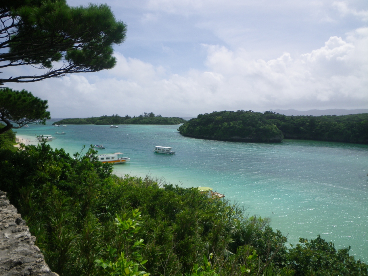 ミシュラン三ツ星の美しい川平湾を一望できる高台にある公園です。川平湾の紹介写真といえば、この公園から撮影したものばかり。訪問時は曇り空でしたが、それでもブルーやエメラルドグリーンの海を堪能できました。展望台から見える、青い海と真っ白な砂浜とのコントラストも素敵でした。