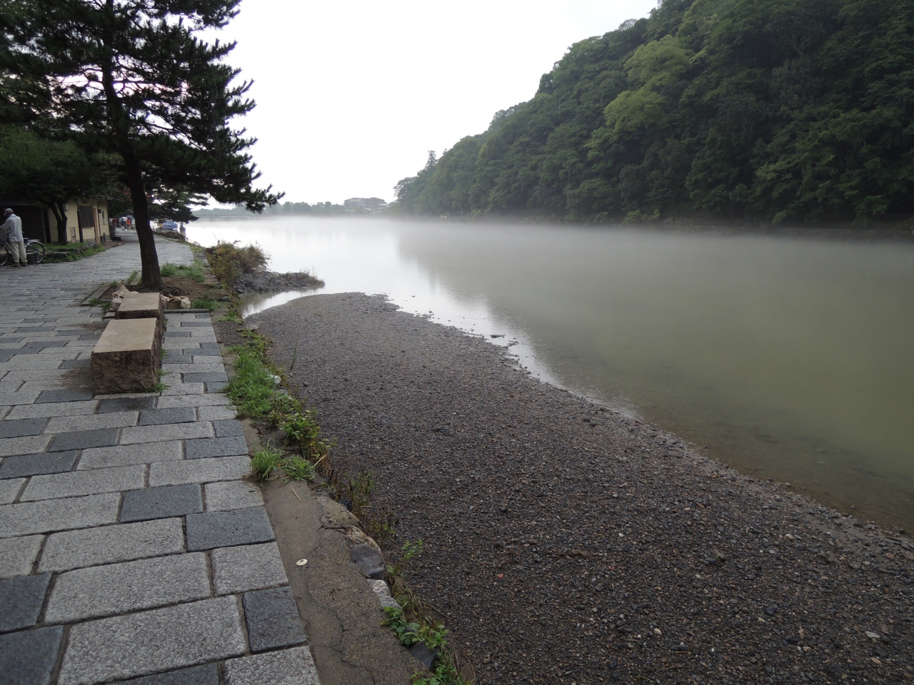 自分が行ったときは川面に霧が立ち込めとても幻想的な風景をかもし出していました。嵐山と渡月橋と桂川はこの辺りには欠かせないものなので、いつもカメラの被写体になります。上桂川、大堰川、保津川などと流域によって呼び名が変わります。