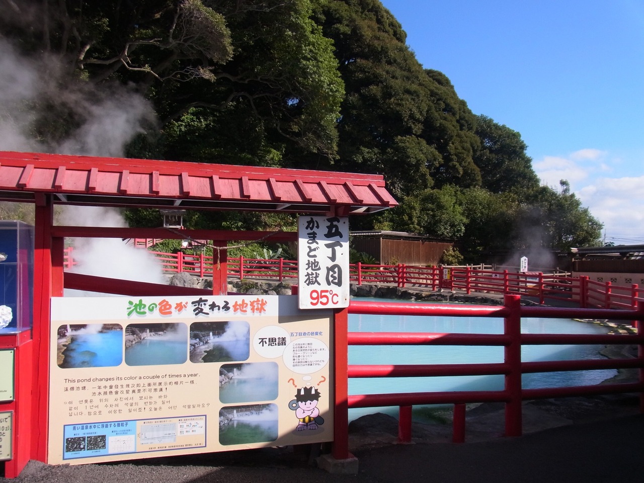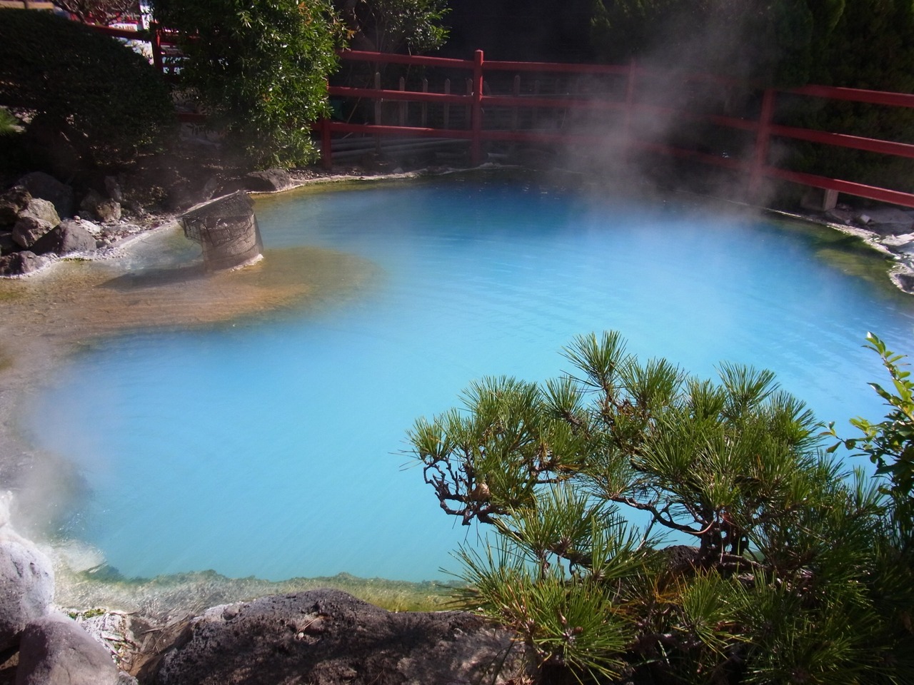 8つある、別府の地獄めぐり。海地獄、竜巻地獄、血の池地獄、白池地獄は国の名勝として指定されています。