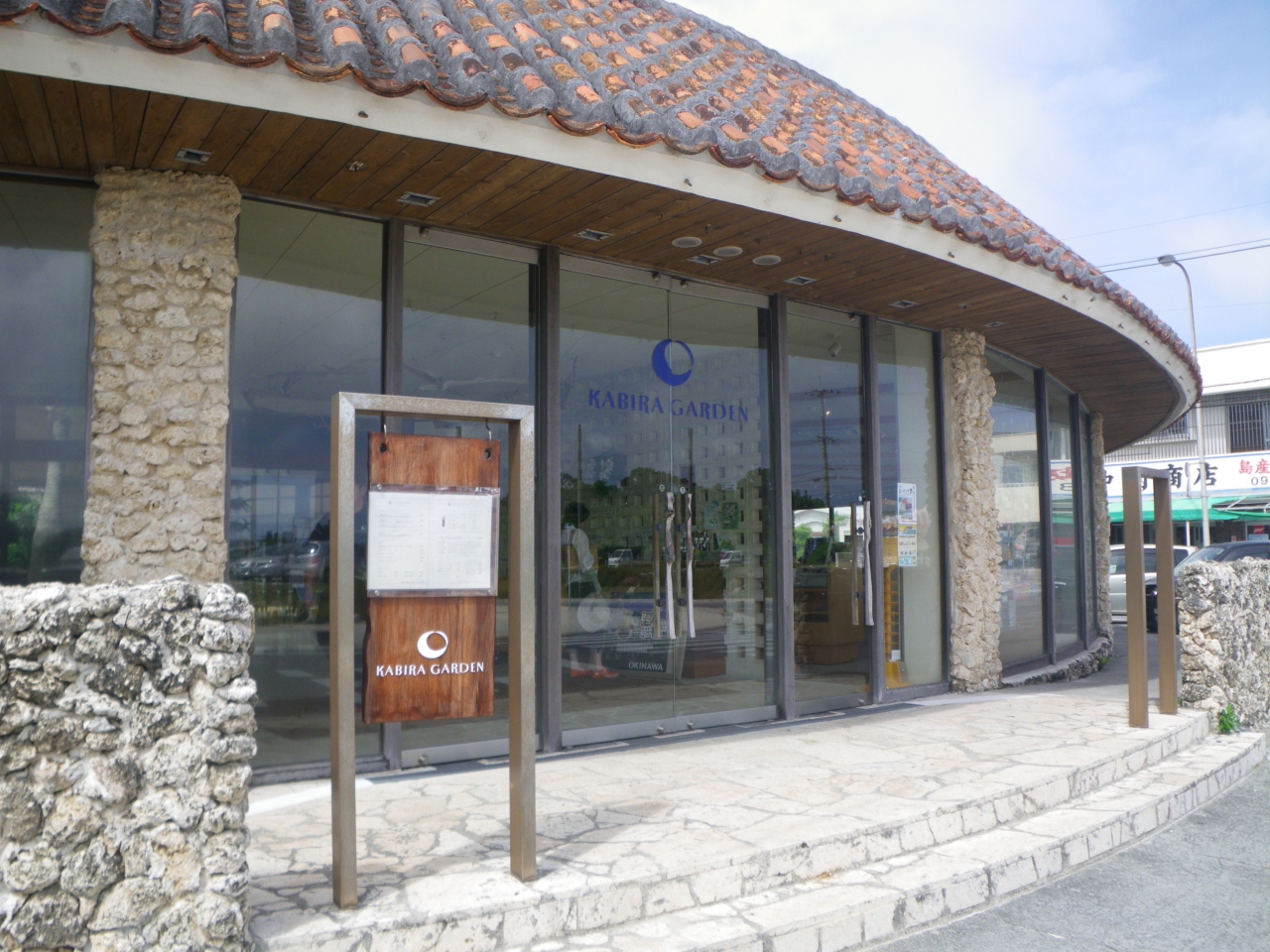 無料駐車場前の便利な場所にありました。お昼をとろうとメニューを見て、その金額にびっくり。タコライスで1100円、ビーフカレー1400円、定食は1000円以上があたり前・・・。スタイリッシュな外観で綺麗なレストランではありましたが、石垣島のランチにはちょっと高すぎかも・笑。