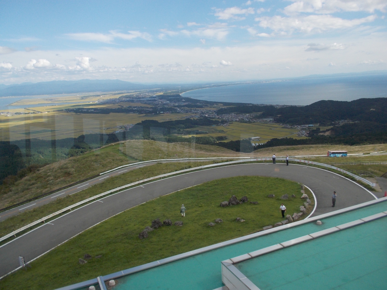 男鹿半島の中では、高い山の中の1つで、最上階には、回転展望台があり、周り360度を見渡す事が出来ます。 通常は山から吹いてくる風のため、強い風が吹き上げて来ます。 天気が良ければ、秋田市内や「鳥海山」を見る事が出来ます。