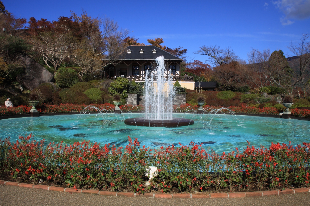 強羅公園は大正3年開園のフランス式整型庭園で、園内には熱帯植物館、ブーゲンビレア館などの温室やローズガーデン、登録文化財の「白雲洞茶苑」がありました。家族で楽しむには十分過ぎると思いますが、紅葉を期待して訪れたので少しがっかりさせられました。