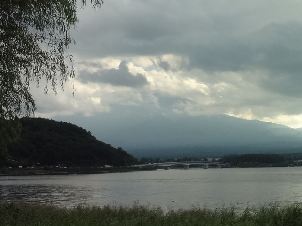 徒歩で渡り、河口湖の風景を楽しみました