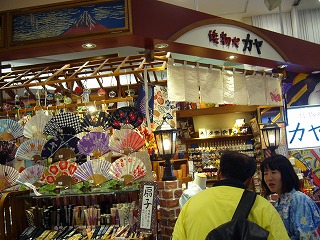 チェックインカウンター奥の出国ゲート横にあるエスカレーターで上階に登った「エアポートモール」内に出店しています。店は小さめですが、扇子や風鈴、染物のタオルなど、日本伝統の小物を中心に、所狭しと陳列されています。
