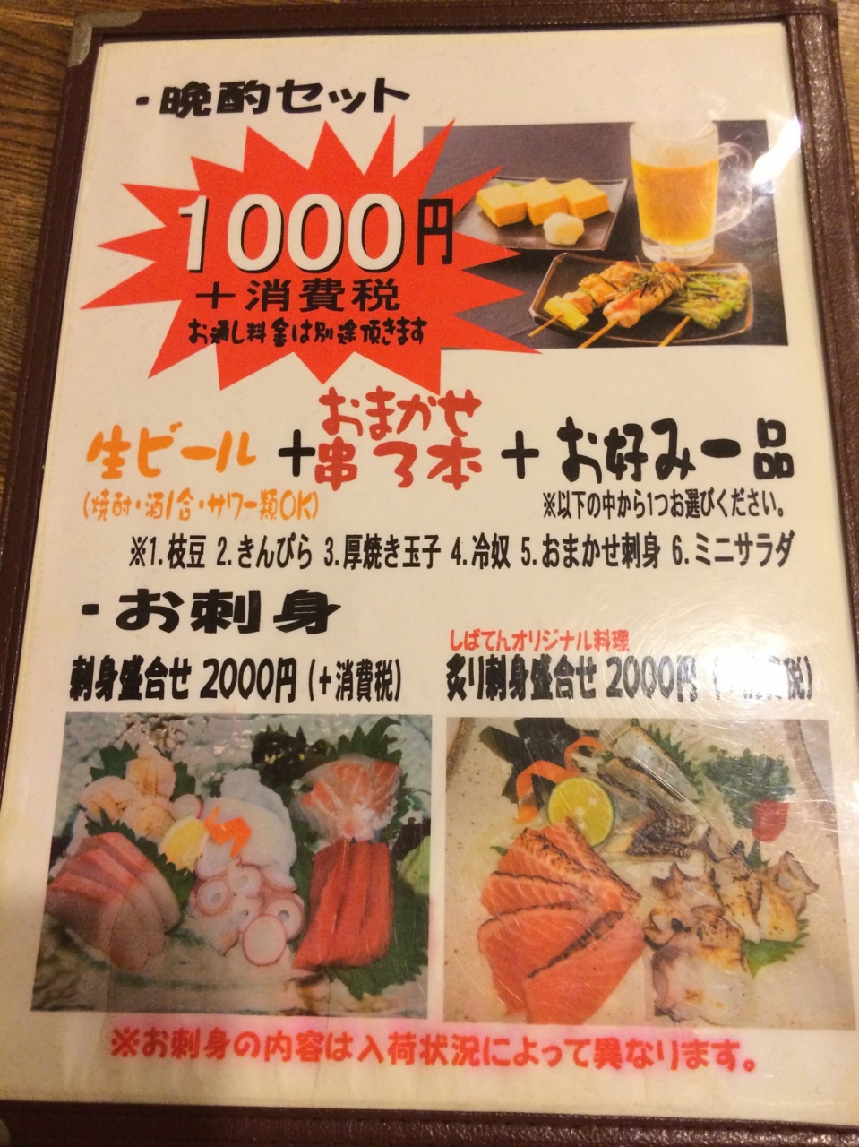 新橋は飲み屋も多く、どこへ入ればいいのかいつも迷います。今回はフラッと入りましたが、後から続々人が来てすぐに満員になりました。1000円のセットを頼みましたが、ビールと串3本、そして一品食べられます。ボリュームもあって結構オススメ!