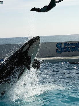 とにかく、休むこと無く次から次へと動物たちのショーが始まります。オットセイ、イルカ、トド、途中にはペンギンたちやペリカンのお散歩もあります。そして、何と言っても圧巻は巨大なシャチのショーです。おそらく、海で出会ったら恐怖のあまり気を失ってしまいそうな大きなシャチ達が、豪快にそしてコミカルに飼育員の人たちとショーを繰り広げていきます。まるで、人と動物が一緒になって仕事をして水族館を経営しているようなのです。今まで行ってきた水族館とはひと味も二味も違う鴨川シーワールドはとてもオススメです。
