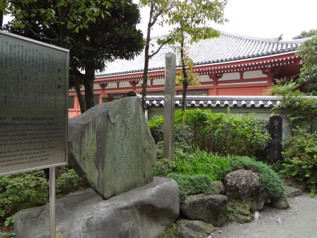 浅草で夕食をした後、浅草寺の境内を散策中に見かけた史跡です。