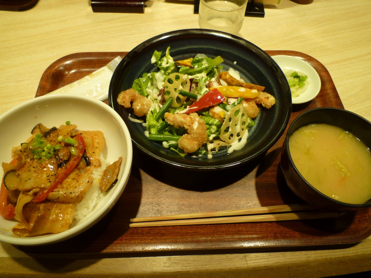 上野駅構内にあり、朝食から利用できるオシャレ系定食屋さんです。料理研究家が監修した野菜多めの定食メニューがあり、「最近食生活偏ってるな」という方におすすめです。昼時になると行列ができるほど混むので、ここでランチにしたいときは11時台に着くように行くといいと思います。