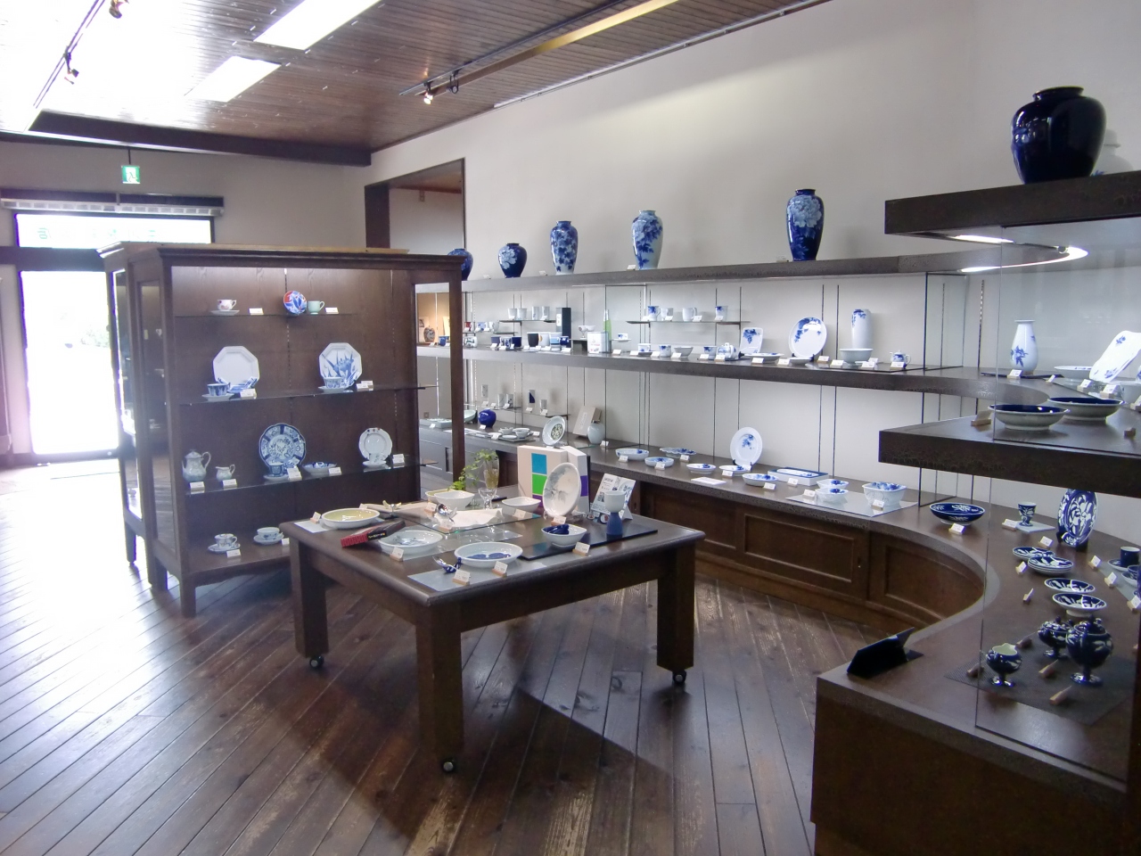 レンガ造りの建物で、1階はショールーム、2階は参考館として、陶磁器や様々な展示物を紹介されています。
