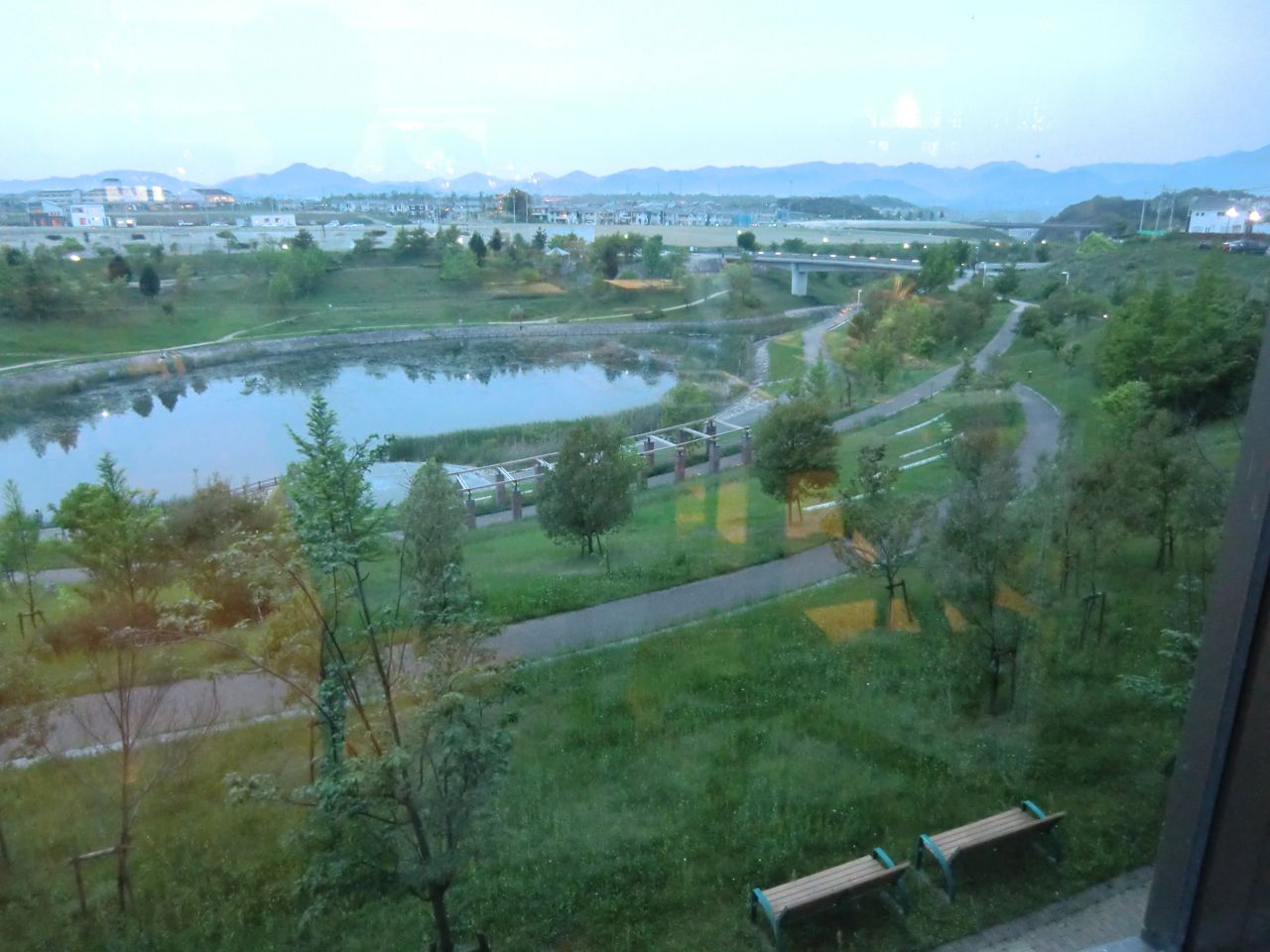 一番に乗り込んだため窓側の席でした。たしかにちょっと波打つ丘の風景や池や公園で外国のような気分を味わえました。
