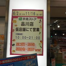 仮店舗はお弁当や飲み物、果物などが売っている程度でした。