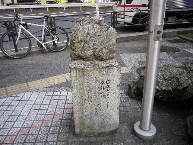 ガソリンスタンドが発祥したのはこの場所らしい。そういわれてもあまり感慨はないが、それよりも設置されている碑があまりにも無防備というか、無造作というか、これが碑であると言われない限りきっと誰も気が付かないと思われます。