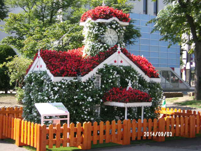 碁盤の目のような札幌の町の北と南の境界線上にある帯状の公園です。東の端がテレビ塔でそこから西に伸びています。お花畑や噴水や彫刻像などがあり、天気の良い日にのんびり歩くのに最高の場所です。イベントもいろいろ開かれる場所としても有名で、私たちが行ったときは残念ながら夏のイベントの片づけの真っ最中で、少し興ざめしましたが仕方ありません。邪魔をしないように、散策しました。