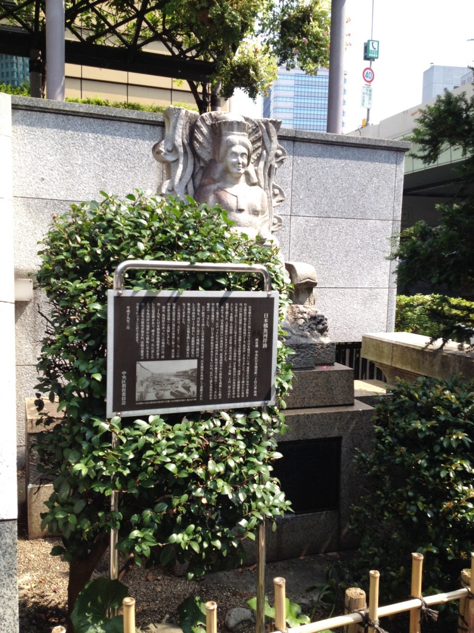 日本橋の脇にこじんまりと建っている記念碑及び記念像です。