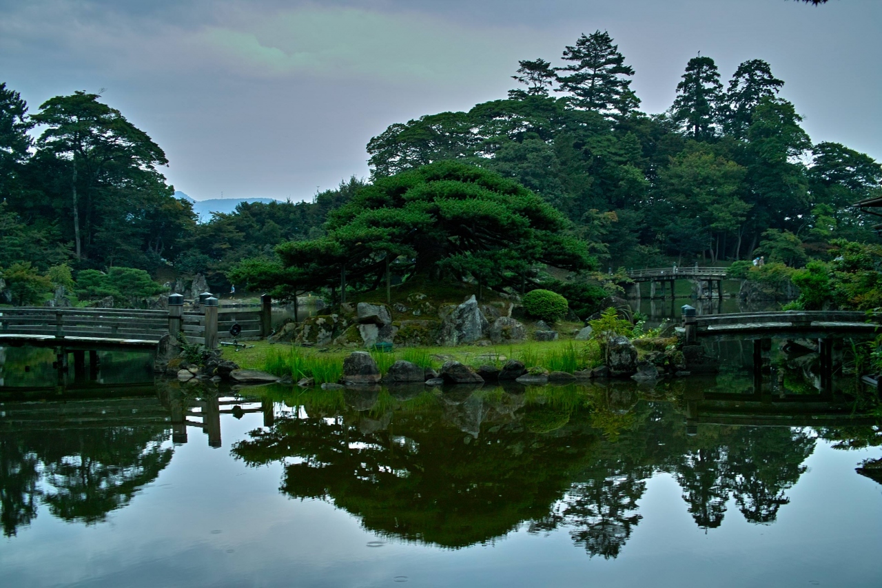 こんな名園があるとは知りませんでした。午後から長浜城、彦根城と見たのですでに夕方、暗くなりかけてから入園しました(彦根城入場券にセットで付いていたので)。広大で美しく池面に映る逆さ絵も見事で、もっと早く入って見るべきだったとちょっと後悔です。