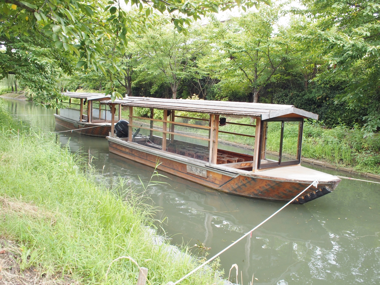 伏見の月桂冠大倉記念館の裏に、十石舟の乗り場はあります。かつて京都と大坂を水運で結んでいた中継点の伏見には、川港や水路が今も残り、それを和船に乗ってゆったりと見るのはとても雰囲気があります。船頭さんの説明も興味深く、三栖閘門(みすこうもん)資料館など、徒歩ではなかなか行かないような施設にも立ち寄ってくれました。水辺は涼しいので、暑い時期には特にいいかもしれません。