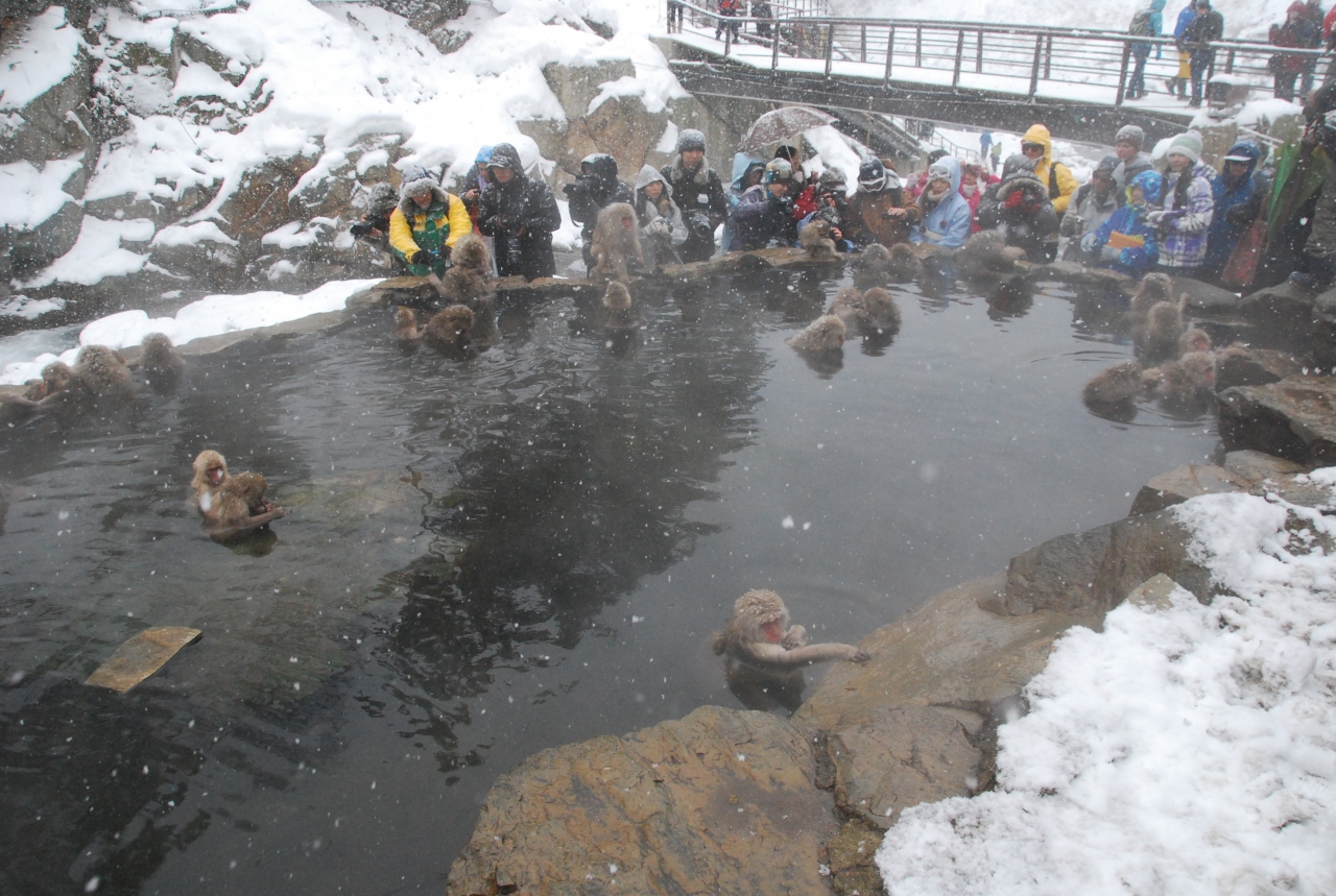 お猿さんたちが入ってくつろいでる温泉です。観光客に慣れているのか、人間が写真を撮っていても,近づいても逃げようとはしません。思わず一緒に浸かりたくなる、ほのぼのとした場所です。雪深い季節に行くのがベストだと思います。